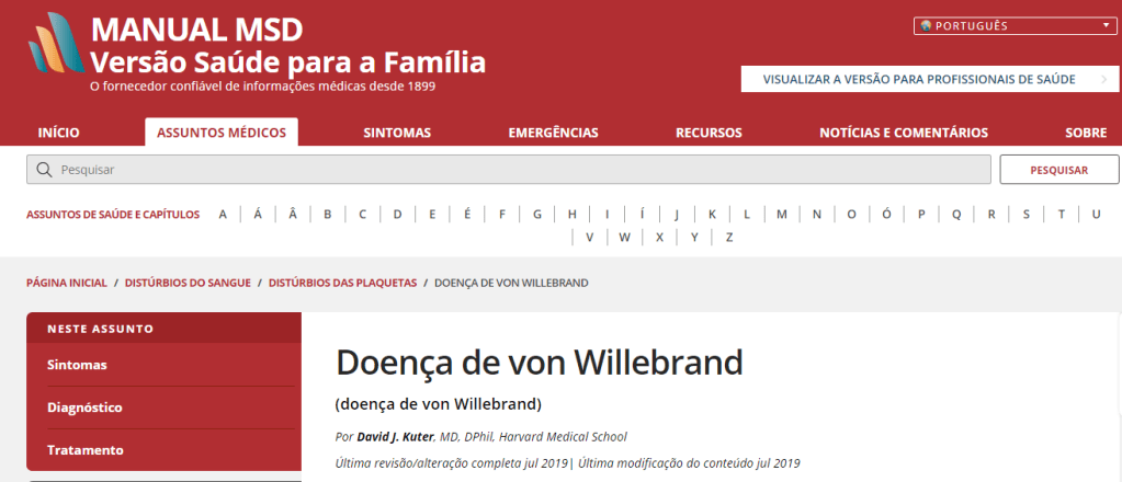 Um comentário em “Descobri que possuo redução dos níveis de fator de von Willebrand, e ai?”
