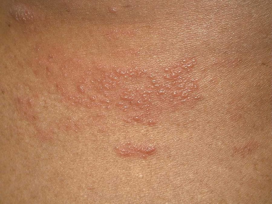 A lesão de pele é um sinal comumente presente na reativação da infecção com a presença de vermelhidão, bolhas (vesículas) ou ainda crostas. Porém o que mais se destaca é o incômodo, não raramente incapacitante provocado pela dor. Isso se deve porque a infecção acomete diretamente o nervo, provocando dor, sensação de queimação, por vezes até mesmo prurido (coceira). O quadro clínico é tão incômodo que muitos reclamam até mesmo da dor provocada pelo simples contato da roupa.